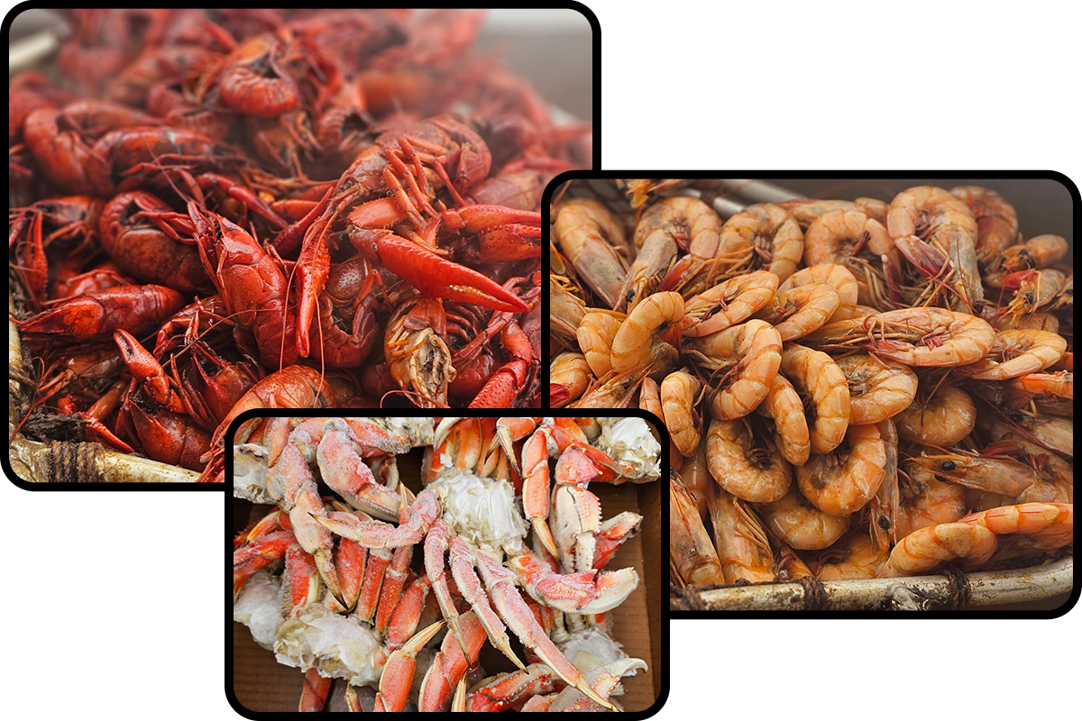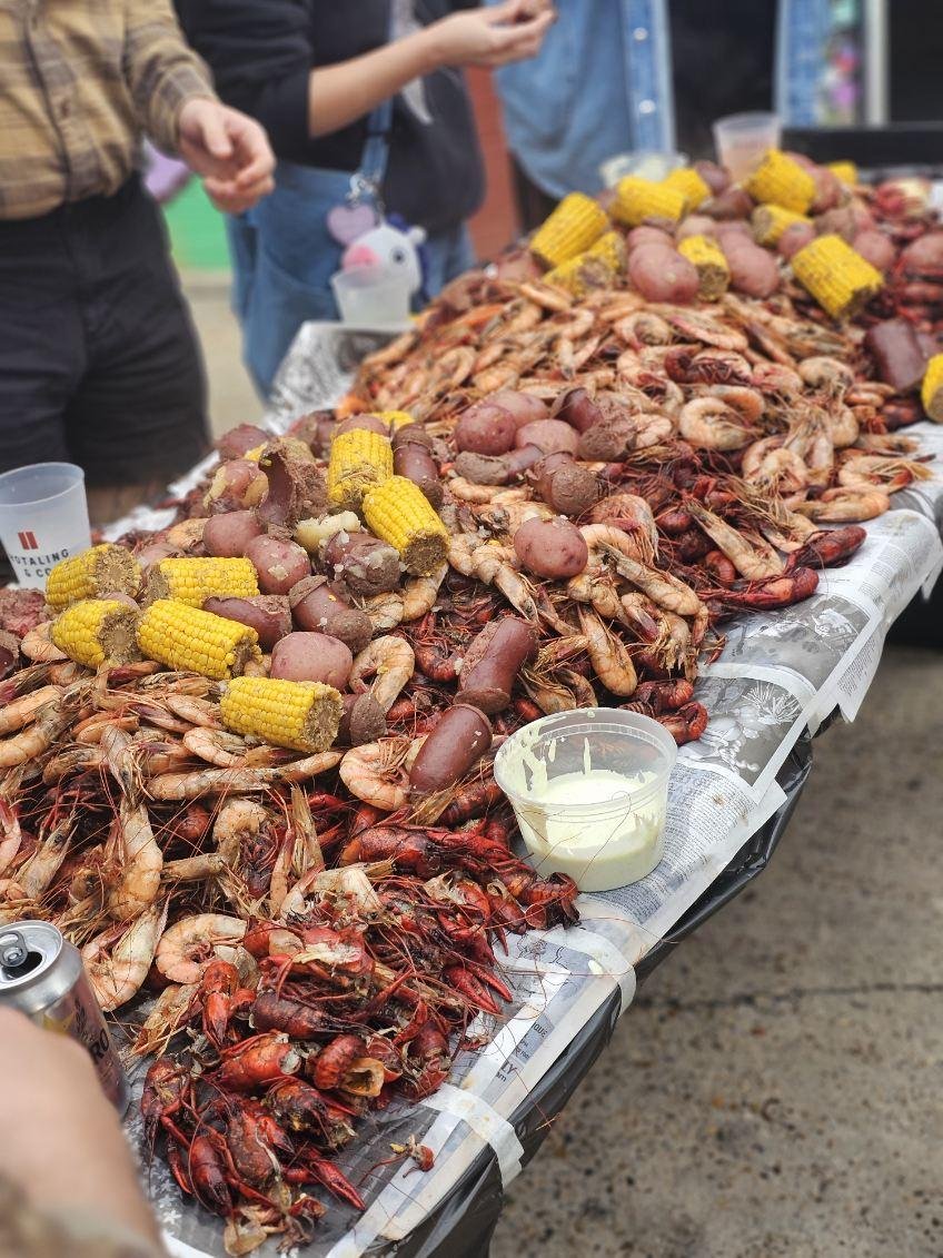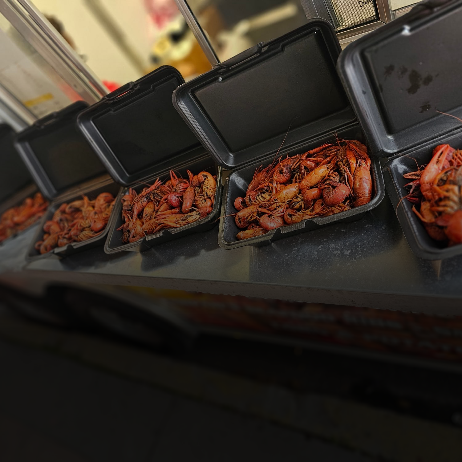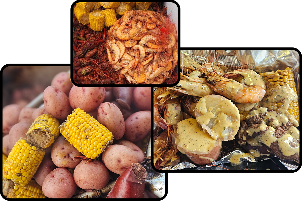 Crucial Seafood offers a variety of fresh catches like crawfish, shrimp, and crabs, along with savory options such as turkey necks, sausage, corn, potatoes, and more! Or get your BBQ fix with juicy hamburgers, hot dogs, chicken, hot sausage, or pork chops, all grilled to perfection. Planning a bash? Let us cater!
